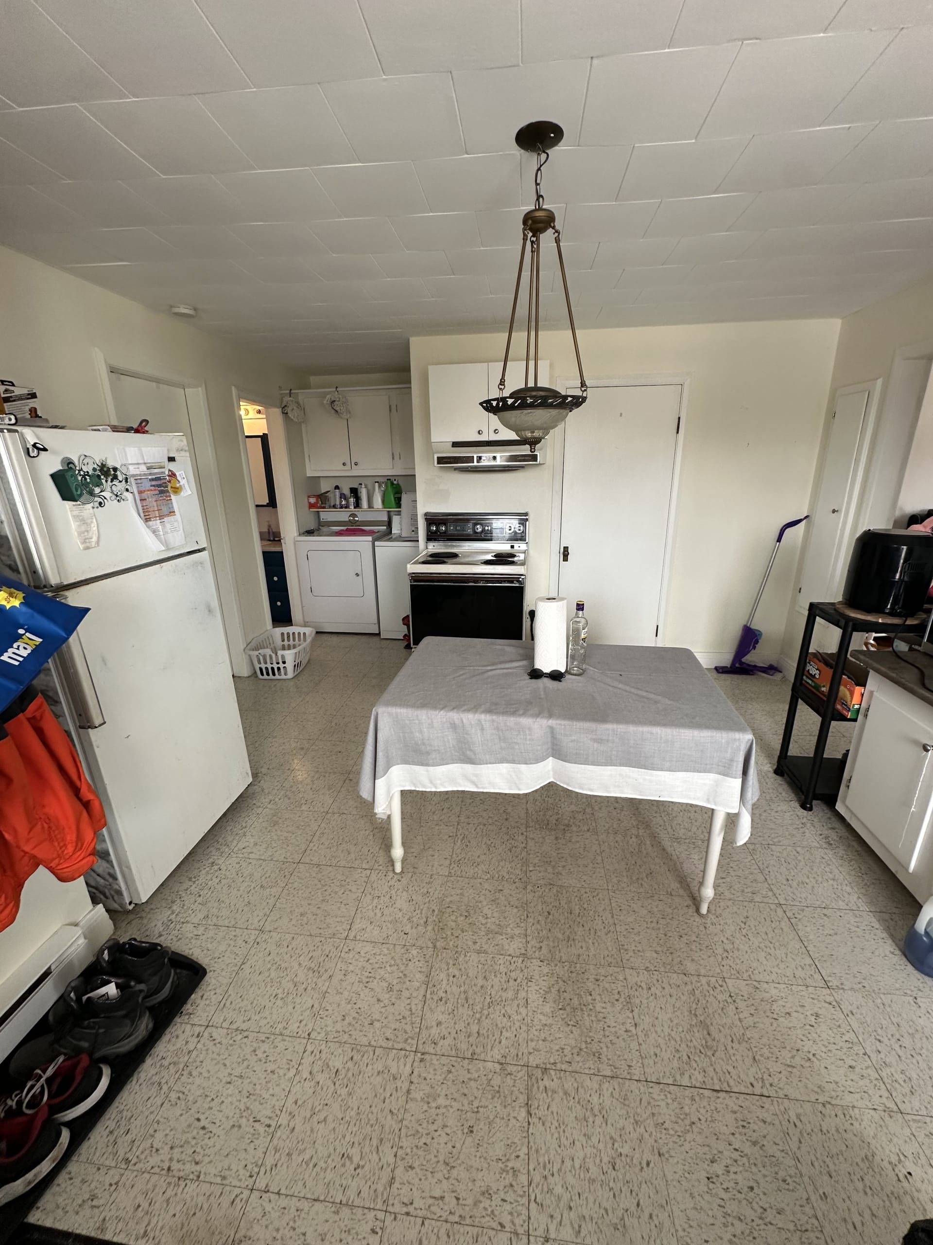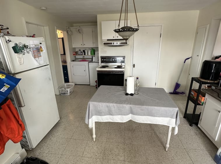 Semi-meublé : four, frigidaire, laveuse-sécheuse, table, divan